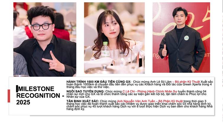 Một điểm nhấn xuyên suốt phần nhìn lại năm cũ chính là tinh thần đồng hành. Trong suốt năm 2025, Green Xperts không chỉ tập trung vào việc hoàn thành mục tiêu kinh doanh, mà còn chú trọng xây dựng môi trường làm việc gắn kết, nơi mỗi cá nhân đều có cơ hội đóng góp và phát triển.