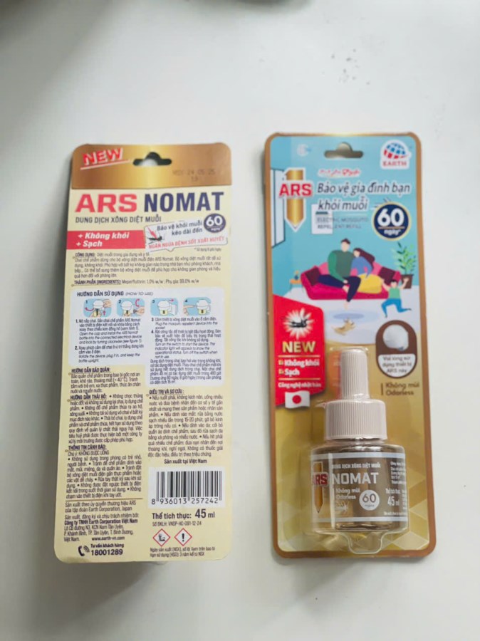 Tháo nắp và lắp chai dung dịch vào thiết bị điện xông điện ARS Nomat P60, vặn chặt xoay theo chiều hình minh họa trên hộp. Xoay thiết bị điện kết nối, cắm và giữ cho chai ở vị trí thẳng đứng khi cắm vào ổ điện. Cắm bộ xông xua đuổi muỗi vào ổ cắm điện. Ấn nút khởi động, đèn sáng hiển thị trạng thái hoạt động. Khi sử dụng xong, chỉ cần ấn tắt, không cần tháo thiết bị ra khỏi ổ điện.